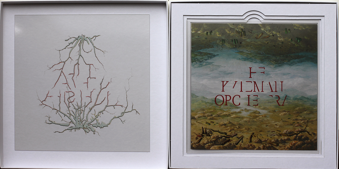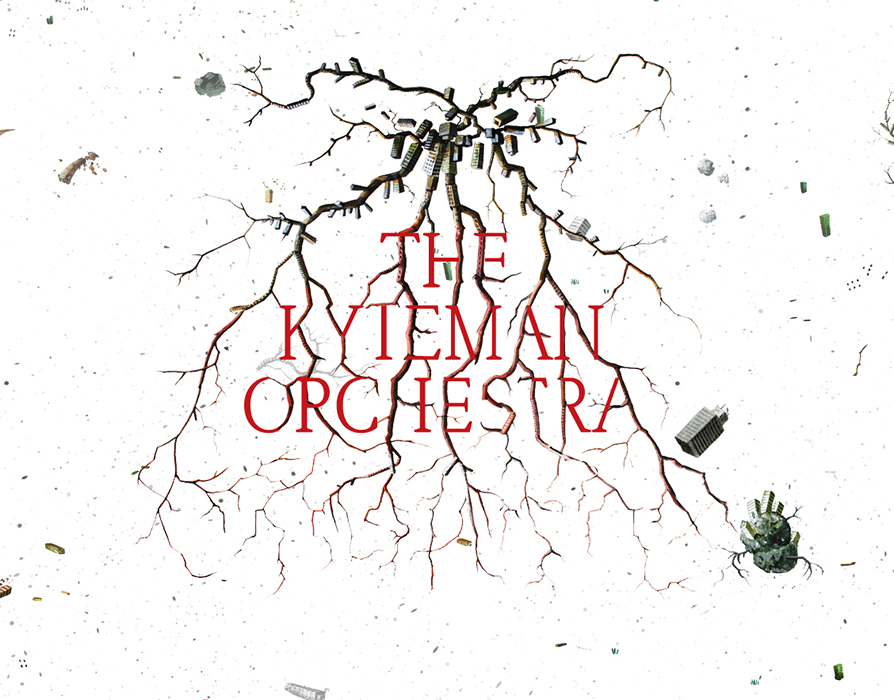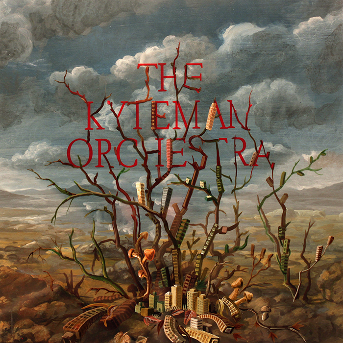 In 2012, award winning multi-instrumentalist Colin Benders, better known as Kyteman, asked me to do the artwork for his new album. His Orchestra produces (in their own words) a merge of sounds, somewhere between Opera, Hiphop, Drum & Bass, Electro & Minimalism. The Kyteman Orchestra and I worked together on this project with graphic designer Bas Koopmans and Festina Lente Collective. Because the album is about growth and decay, we decided to compose the picture in different layers, so you can watch the tree with the Kyteman typography arise or deteriorate step by step. The first layer is the empty landscape, symbol of the beginning or the end of the world. In the limited edition one can add or peel off the words and additional branches I painted on transparent pvc sheets.