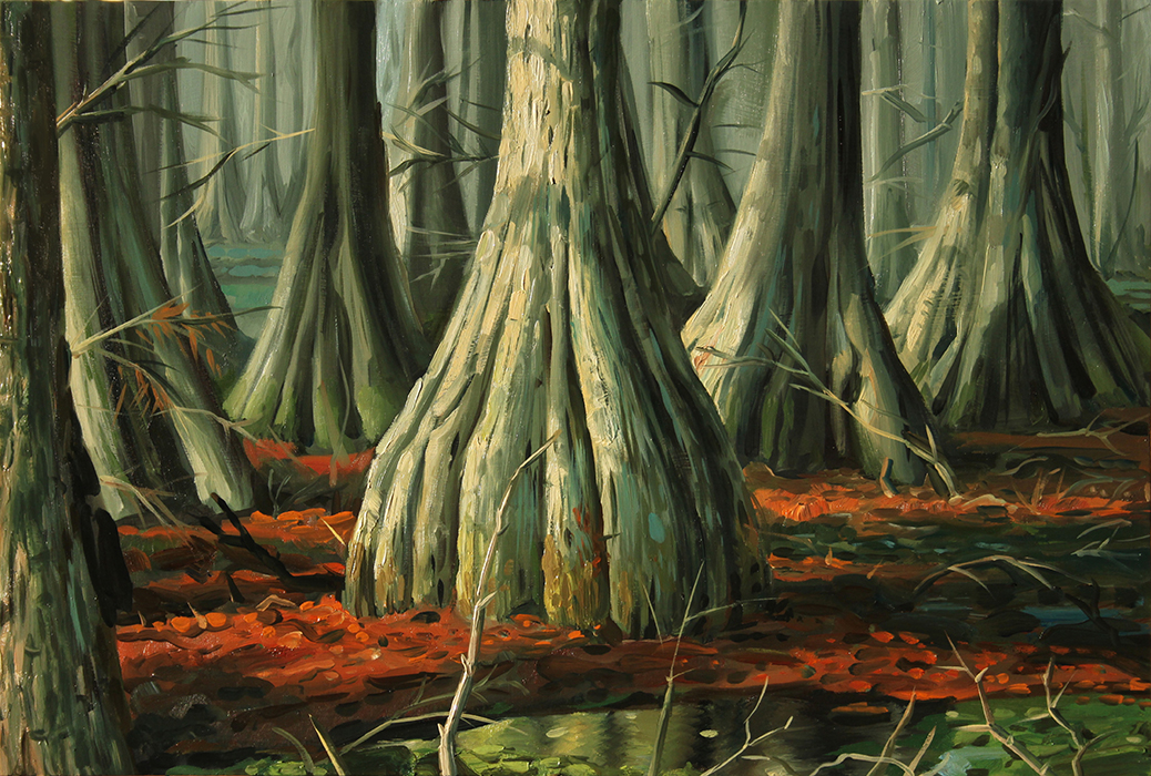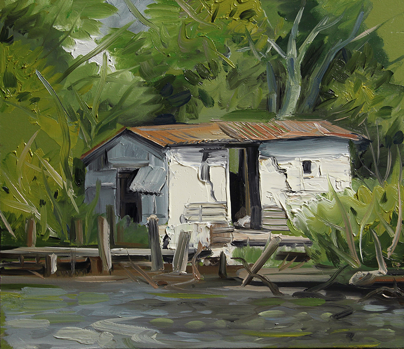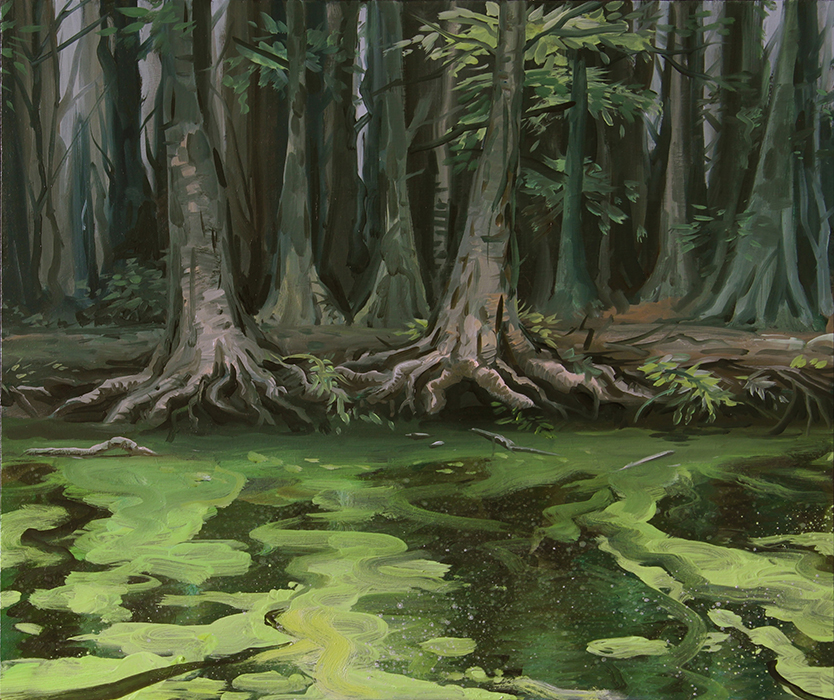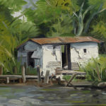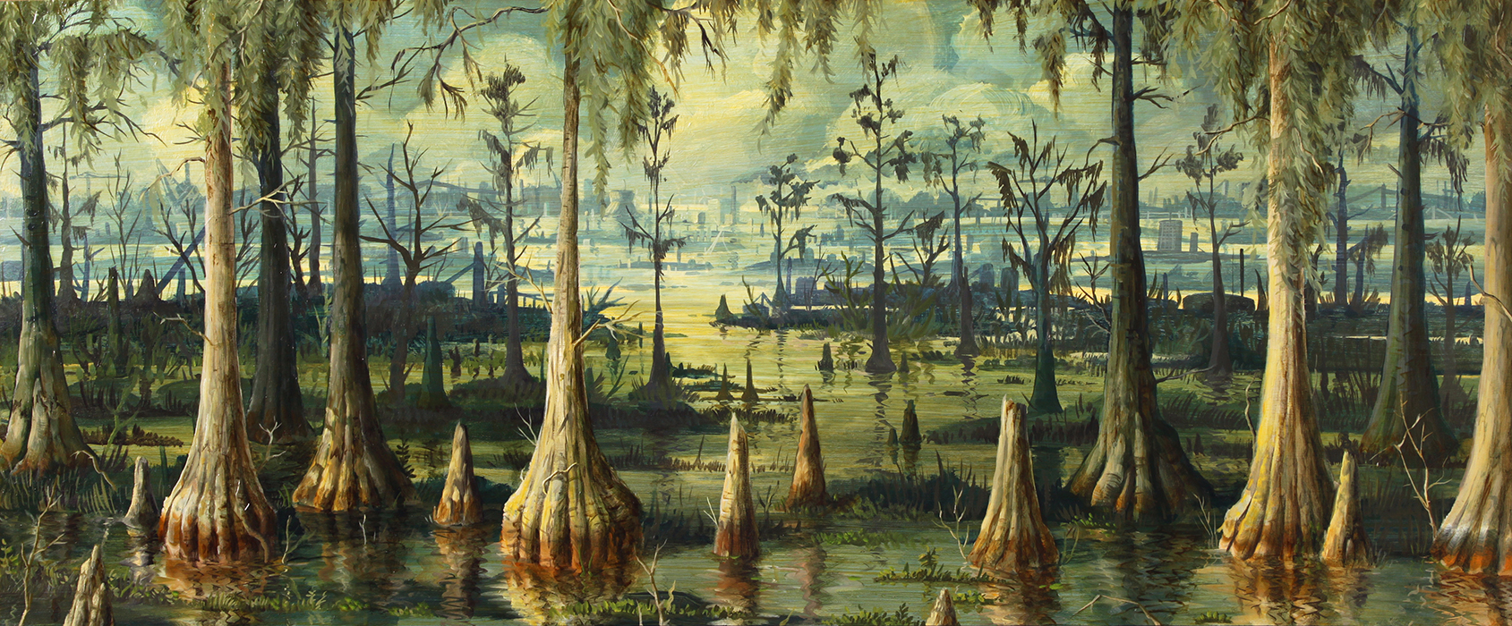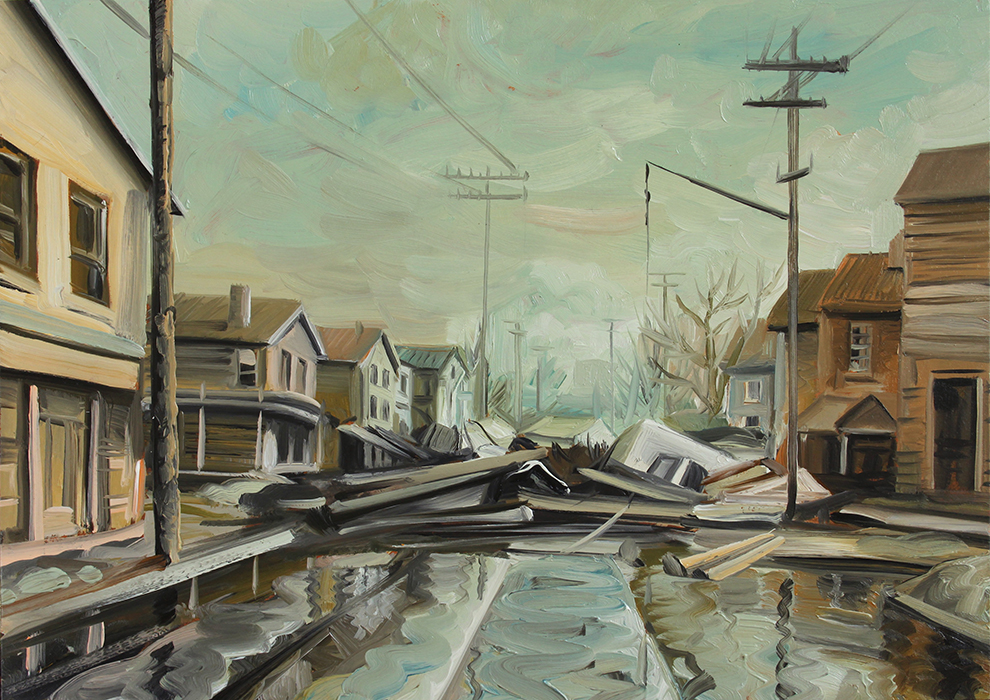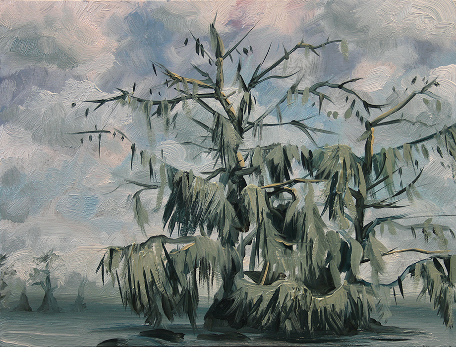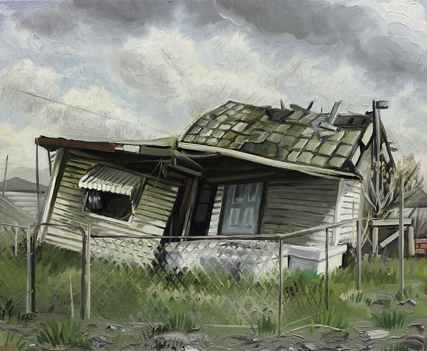 A series of paintings I made around 2015 depicting houses struck by hurricanes and floods, and on the other hand deserted, antediluvian looking swamps.
