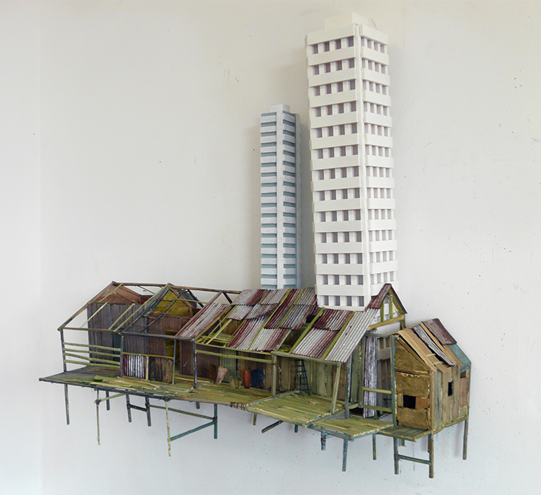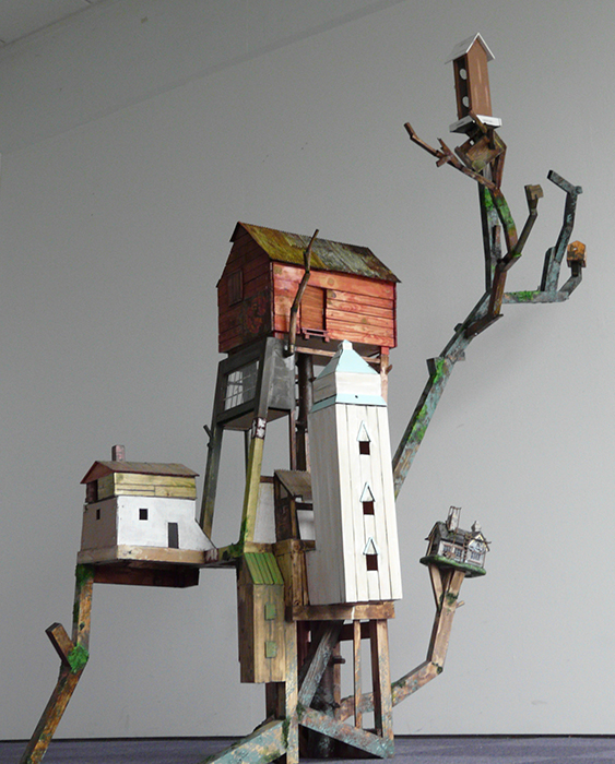 After having made so many dreamy paintings, around 2008 I was looking for materials that were a little harder to handle. I started building wooden structures, at first just as props for my Sketches of Dreamland. I soon decided they were strong enough to stand on their own.